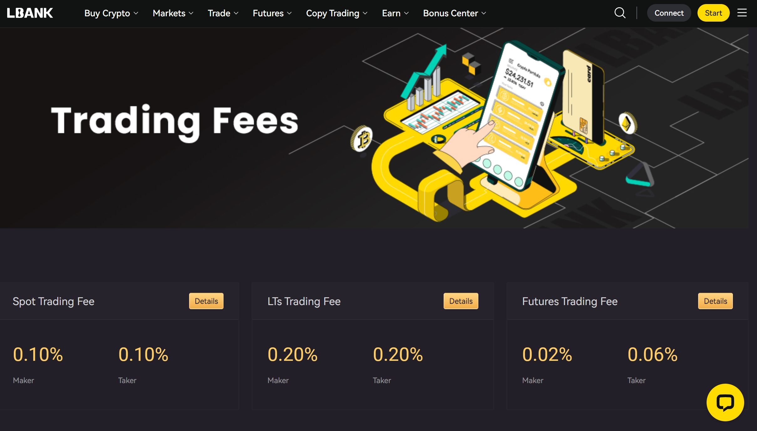 کارمزد فیوچرز در LBank بسیار رقابتی است: 0.02% برای Maker و 0.06% برای Taker.