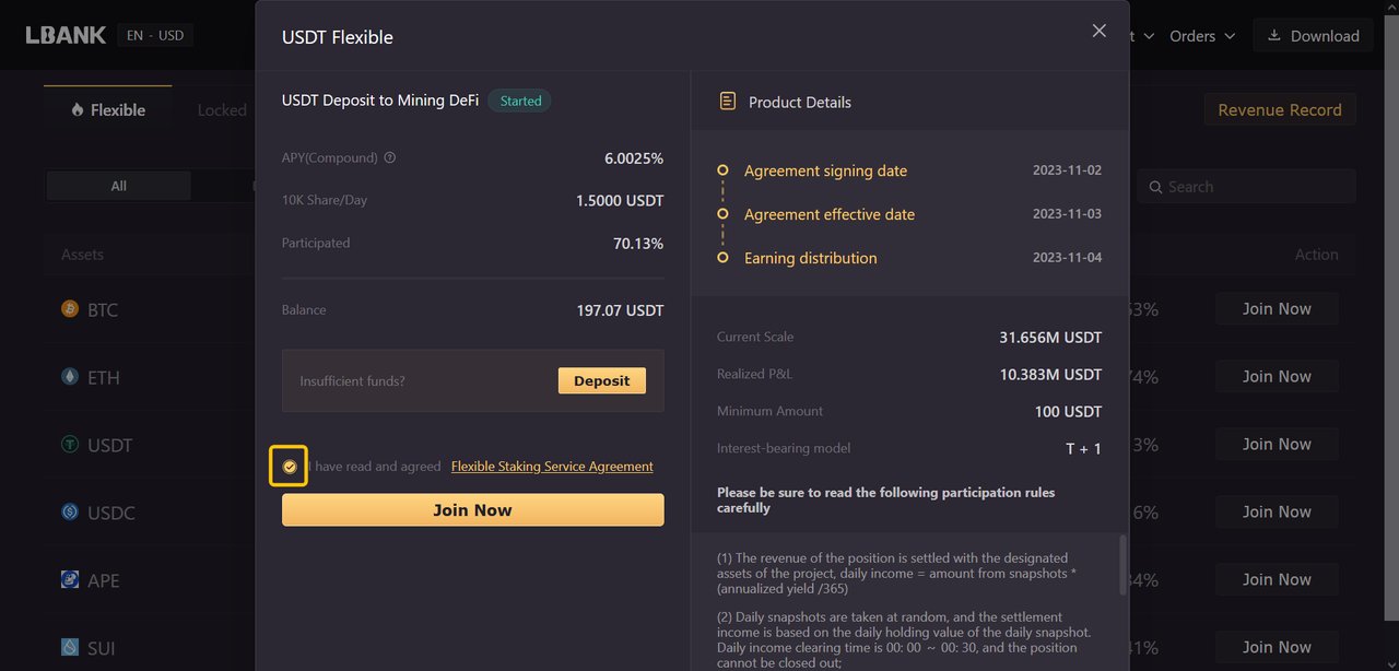 برگه استک کردن را پیدا کنید: اپلیکیشن LBank خود را باز کنید و به برگه “Staking” بروید.