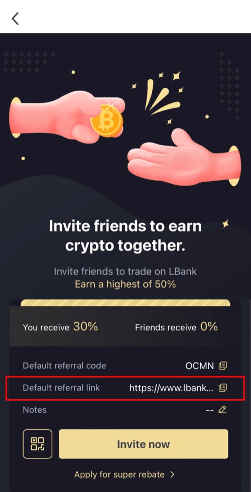در برنامه LBank خود، روی Referral ضربه بزنید و به فهرست پیوند رفرال خود بروید.