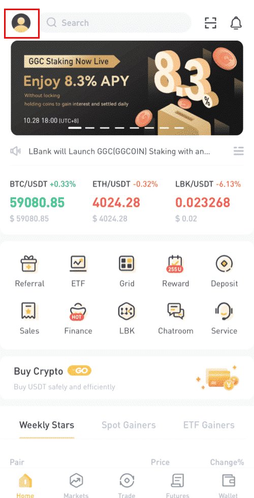 1. به سایت اصلی LBank وارد شوید و وارد حساب کاربری خود شوید. به مرکز کاربر بروید و Referral را کلیک کنید.