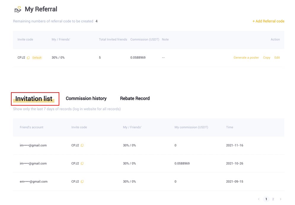 نرخ رفرال پیشفرض 30٪ است، دعوتکنندگان میتوانند انتخاب کنند که 0٪، 5٪ یا 10٪ را با دوستانی که دعوت میکنند به اشتراک بگذارند.